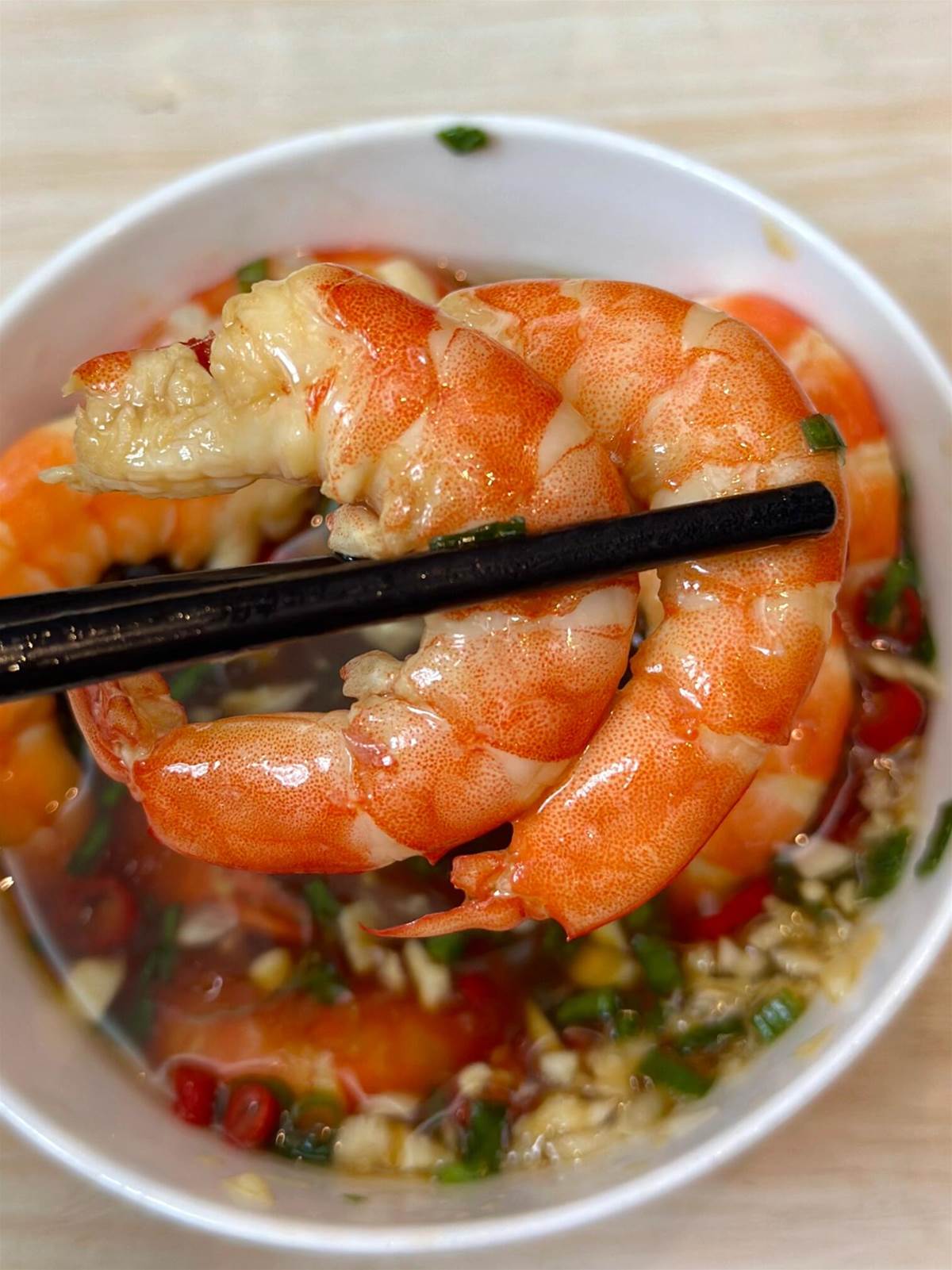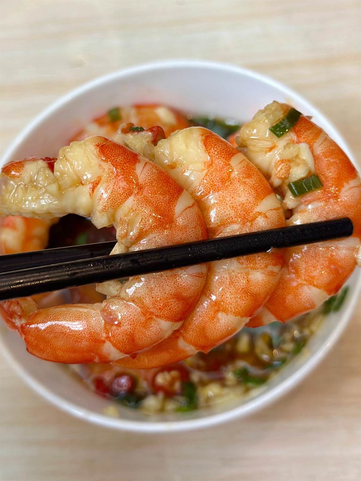 立即放入冰水浸泡2分鐘(蝦肉緊縮更彈牙!)
