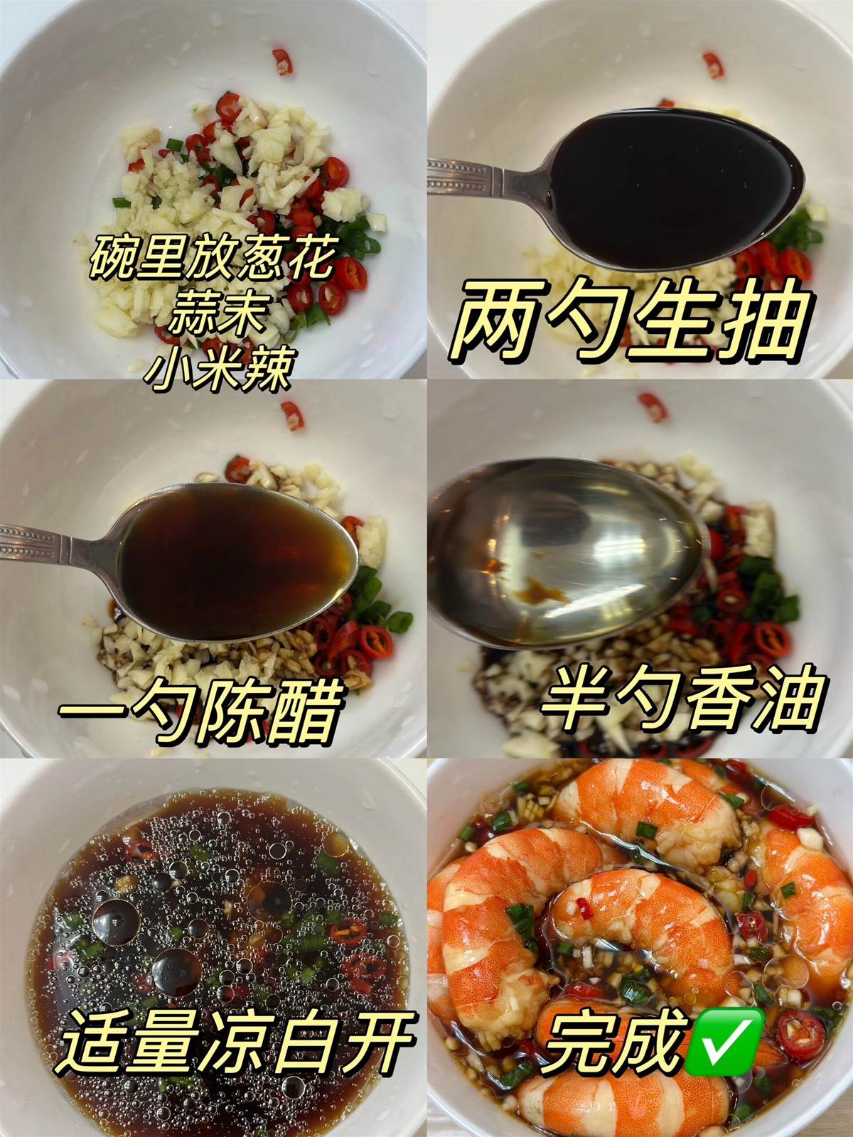 萬能蘸料:蒜末+小米辣+生抽+陳醋+香油
