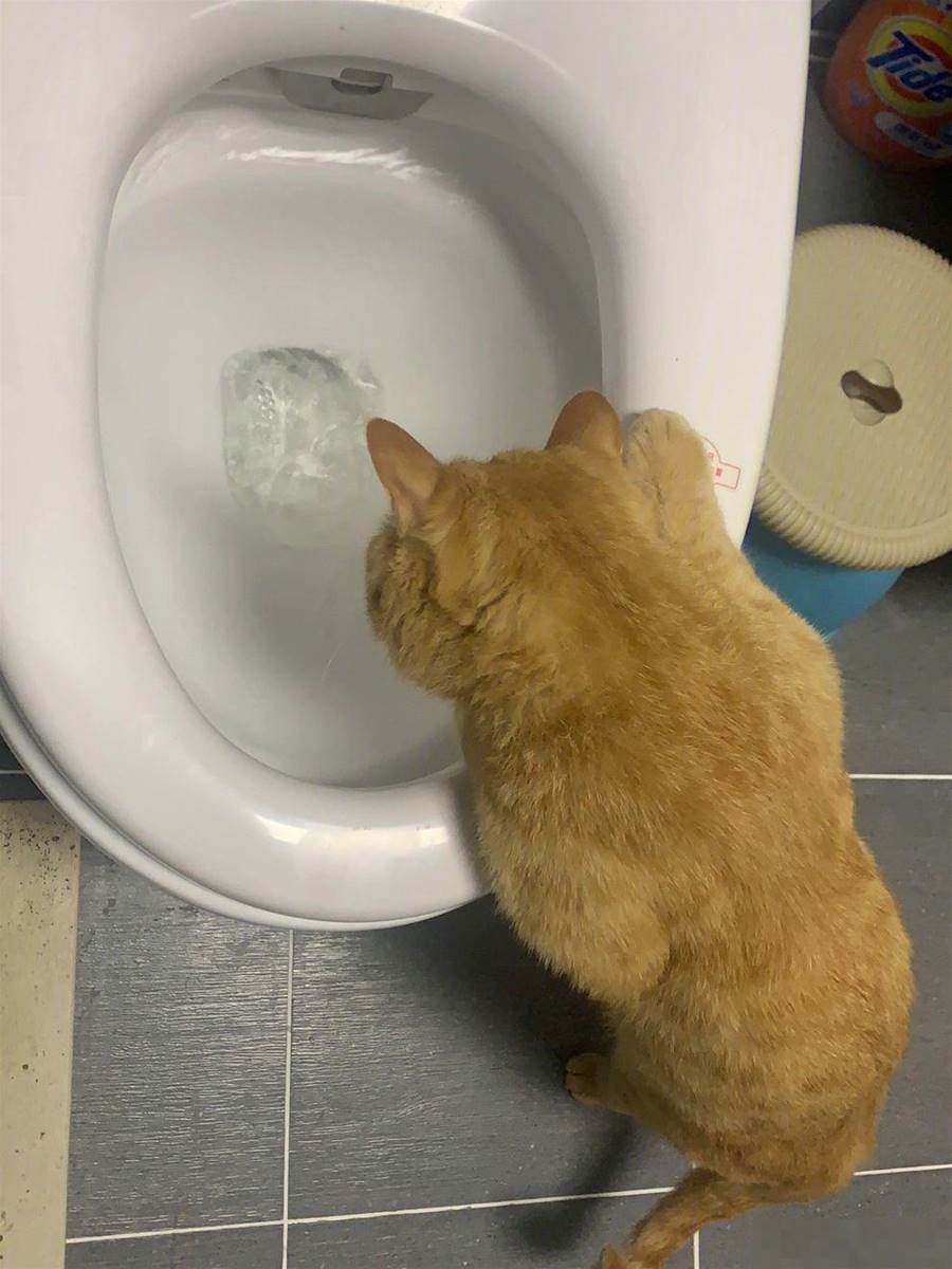 嗯,還知道用完馬桶要沖水,真的是文明又愛干凈的小貓咪。