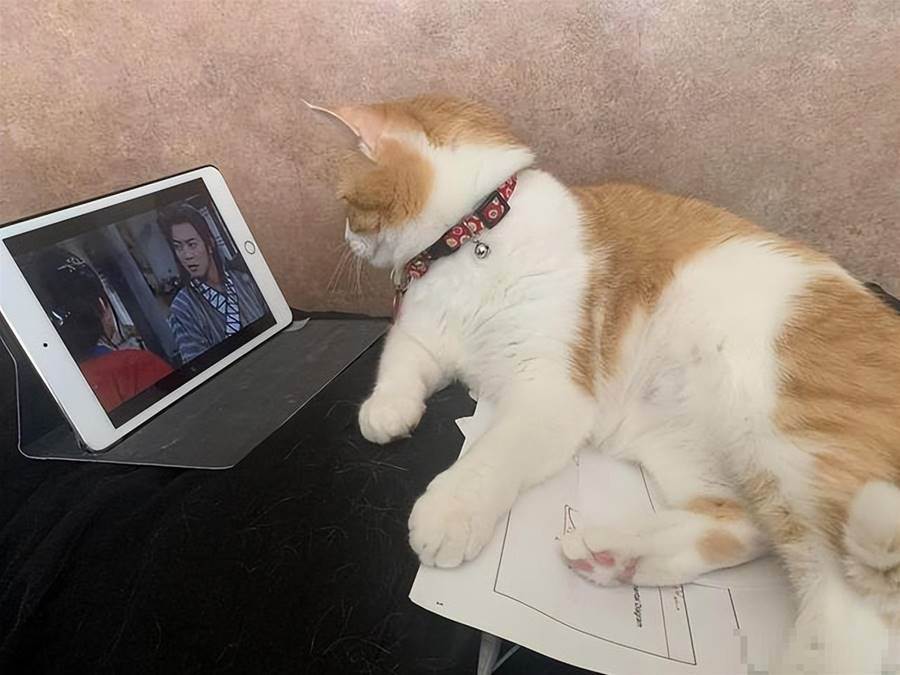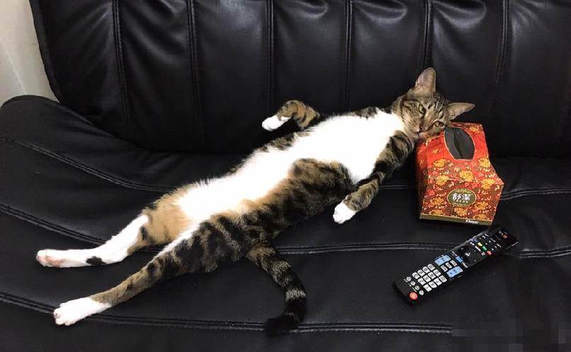 2、開門算什麼,貓咪還學會了用電子產品,跟人類一樣躺在沙發上看電視,旁邊還放著遙控器,太休閑了吧!