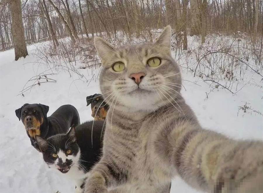 貓:今天跟朋友們出去玩,一定要拍照留念!
