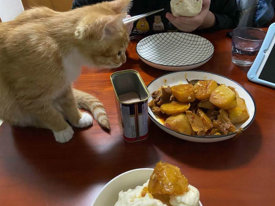 貓:能跟主人一起吃飯,真的是太幸福了!