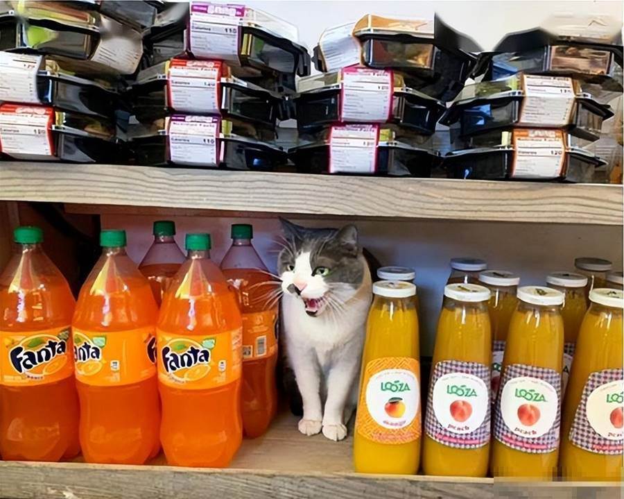 英短貓:賣東西就得吆喝,好喝的飲料,走過路過的都過來看,過來挑了!